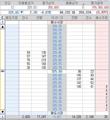 325.55 밑으로 쭉~ 매수 대어 놓았다.