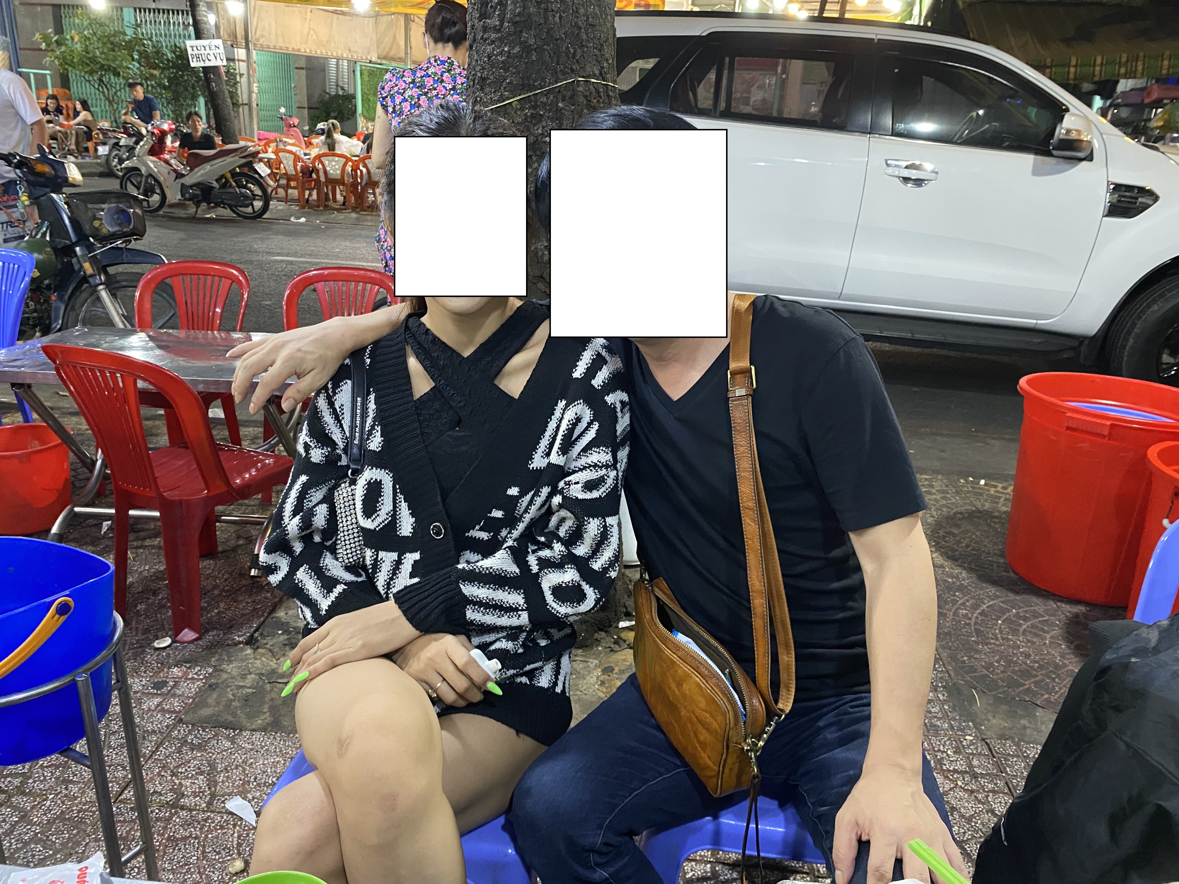 야식 먹으면서... 노천 가라오께다. 베트남인들은 이러고 논다.
