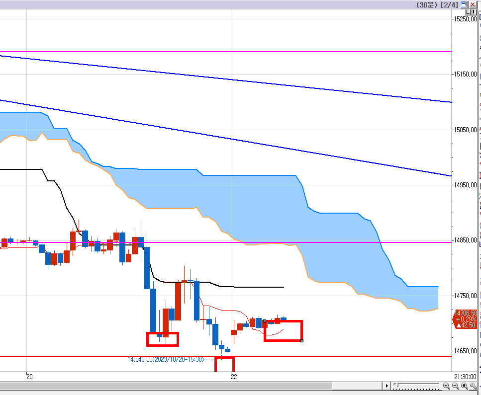금요일 밤 첫번째 박스 매수진입 후 홀딩~
