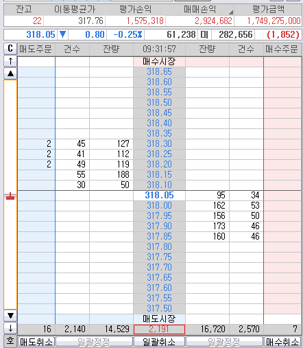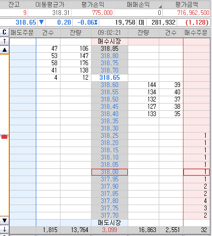 이건 안팔아~ 니가 줄듯 말듯 고작 319.25까지만 쳤는뎅... 나는 거기는 줘도 안먹어