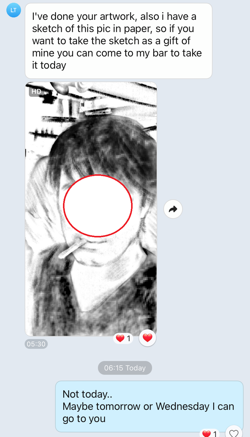 목요일밤 혼술할때 갔던 Bar의 호치민 미대 알바생이 일러스트로 내얼굴을 그려 보냈다.