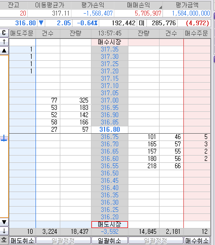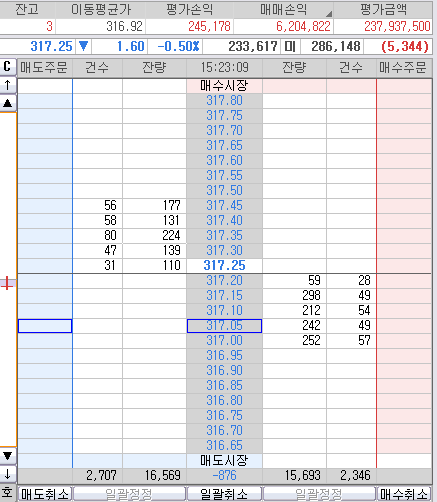 오늘 국선이 나빠요~ 아주 나빠요~ 320.00 을 0.7포 남겨두고 찌글찌글 내리 박네?