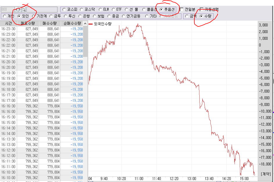 오늘은 특히.. 외놈들이 처음으로 풋옵션 던지기 시작한날.