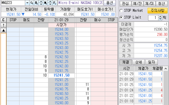 어젯밤 15분봉 매도목표가에 몽땅 청산하고 1개만 들고 있다고 했었다.