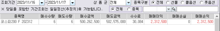 국내선물은 지난주 수익 잘 내놓고 10개만 매도 홀딩하고 버티다가 14일에 살짝 손절주고 빠져나왔다.