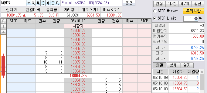 최단기 매도 목표가는 16772.00 이다. 20~35틱차트에서 발생한 매도 목표가다.