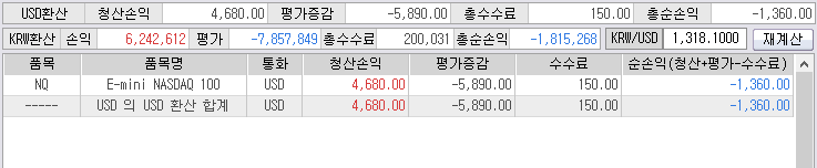 현재 평가액은 한화로 마이너스 800만원!!!
