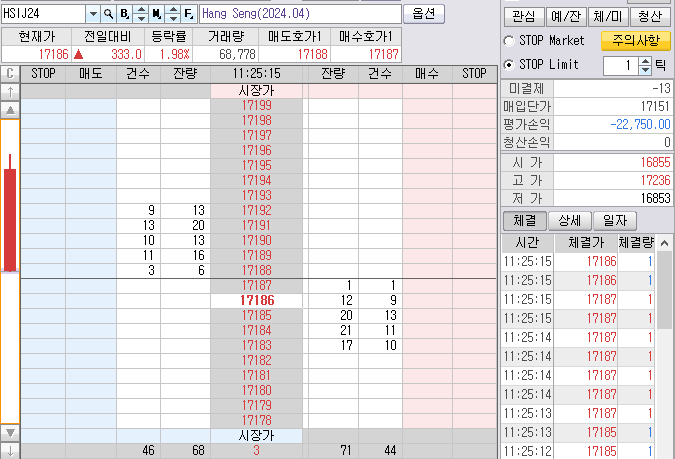 물려 있던 1개와 합쳐 총 13개 항셍 매도!!!