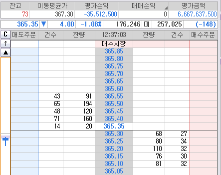 에이.. 오늘 372.00 매수목표가 못 치것네....냅둬라