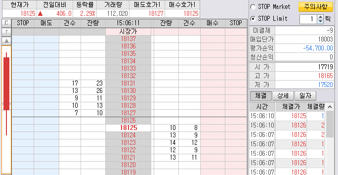 그래도 하루종일 위~아래~ 왔다갔다 하던 지지선이 깨졌는데... 매도 안 들어갈 수 없어서