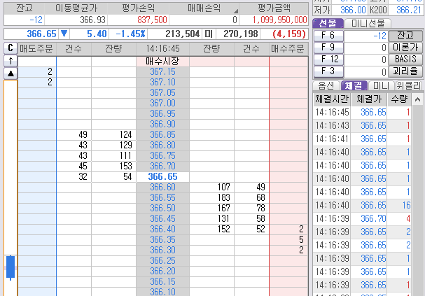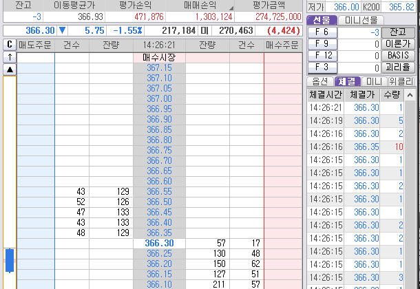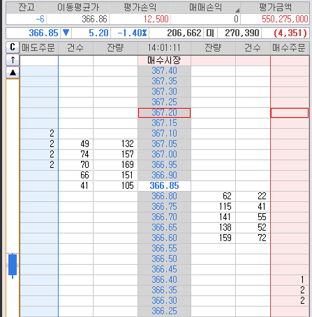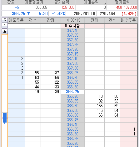 단기 매도 목표가 366.30에 일단 청산 걸어 놓고~