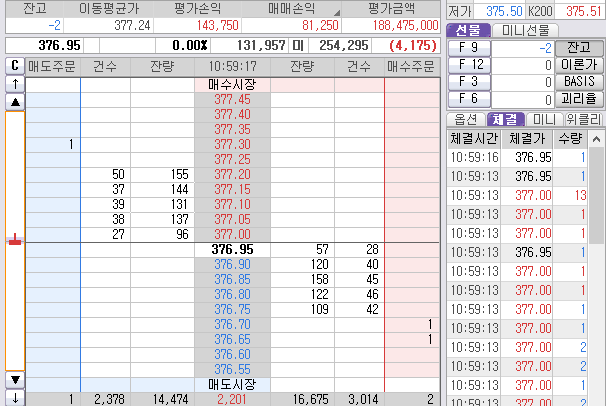 오늘 손풀기로 국내선물 오전(베트남시간 오전 - 한국보다 2시간 늦다)에 단타 트레이딩 했다.