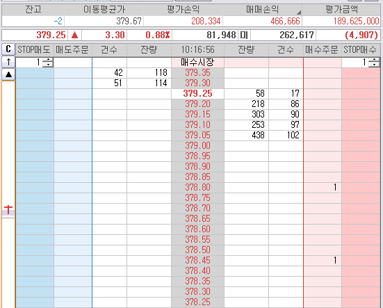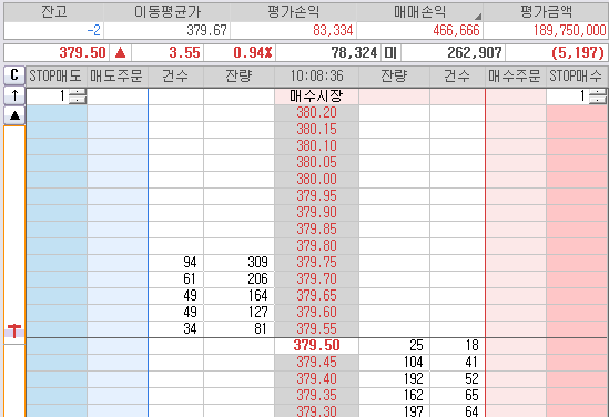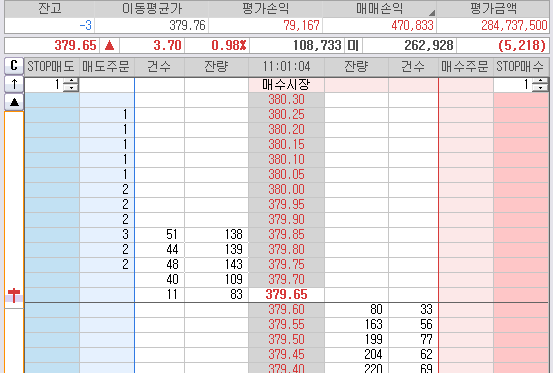 오늘장 시초 10분간 진폭은 378.70 에서 379.75 였다.