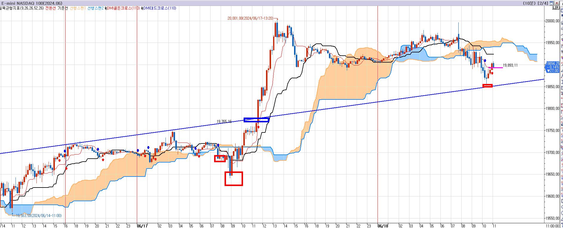 아 참고로.. 차트는 나스닥 6월물을 봤고, 트레이딩은 9월물로 한다.