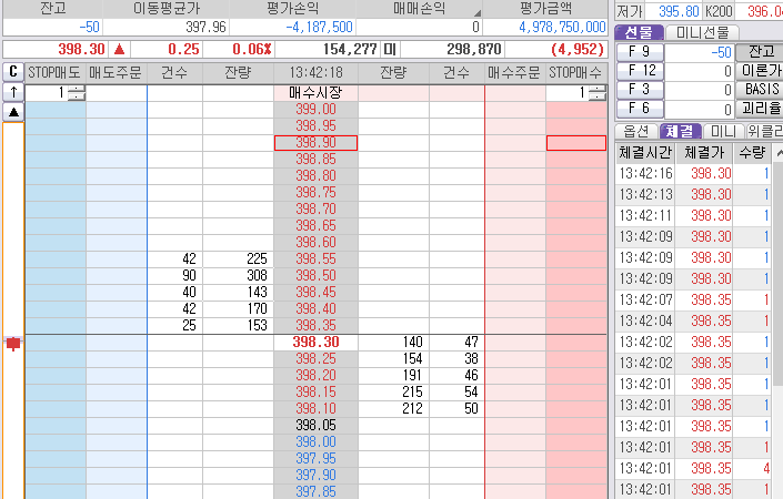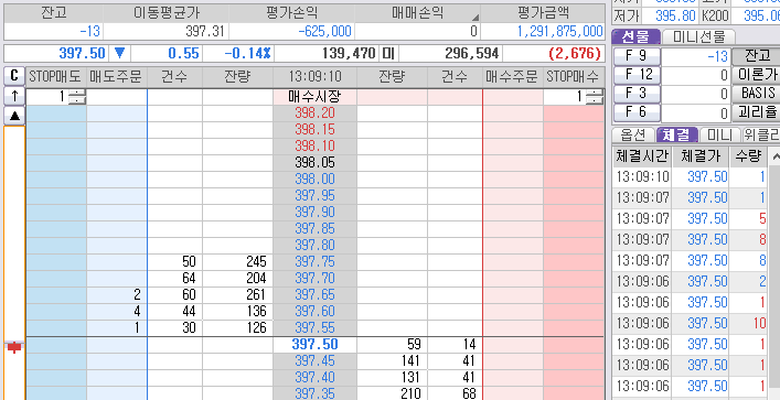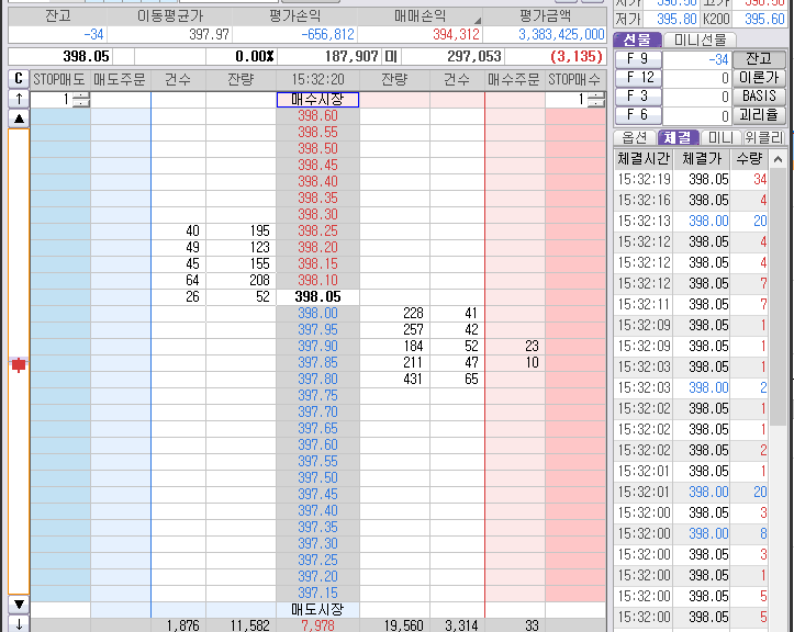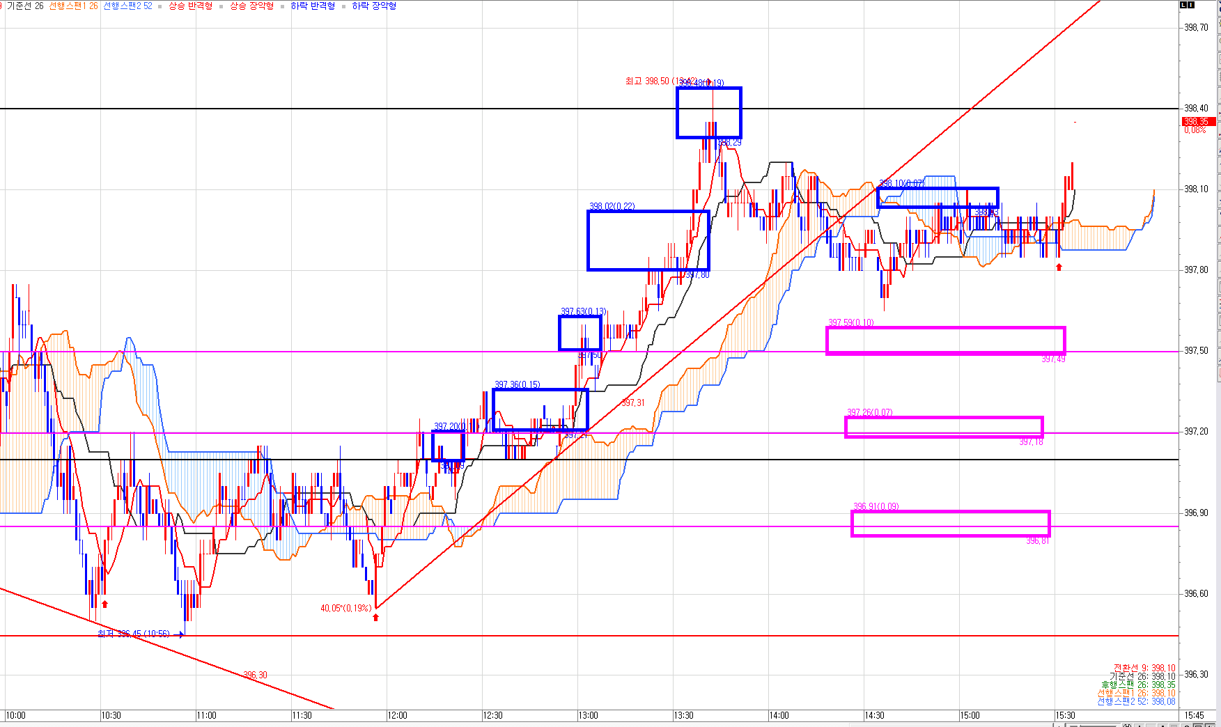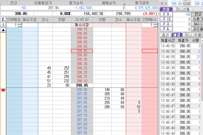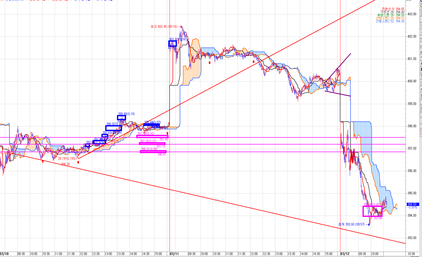 윗 검정색선! 398.40 아침 시초부터 그어 놓은 선이다!