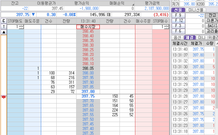 오라방 진짜 진짜 열받았다. 일단 2~4틱 먹고 수량 좀 줄이려 한것 몽땅 주문 취소 했다.