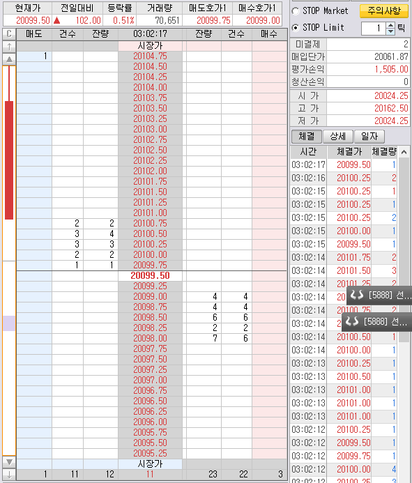아우.. 글 쓰는 와중에 1개 수익 청산 걸어 놓은 것이 10틱을 안 티고 다시 왕창 빠지고 있다.