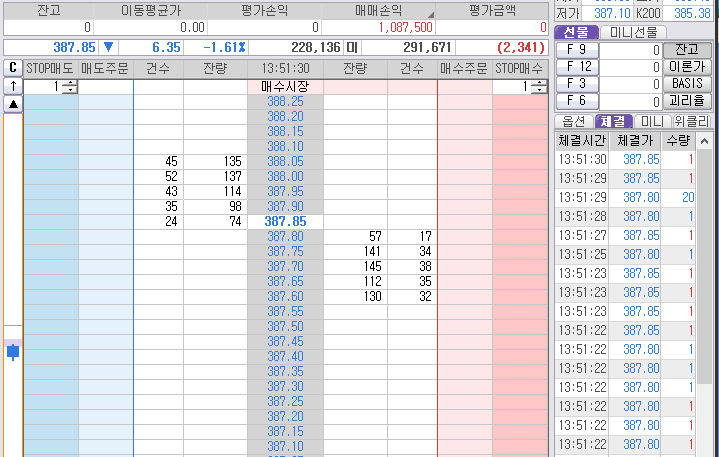 오늘 오후에 발생한 매수 목표가 387.85 부근에 올 청산 하였다.