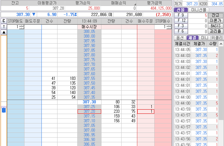 매수 목표가는 387.85 였으나... 5분봉에서 위가 매우 높았는데....