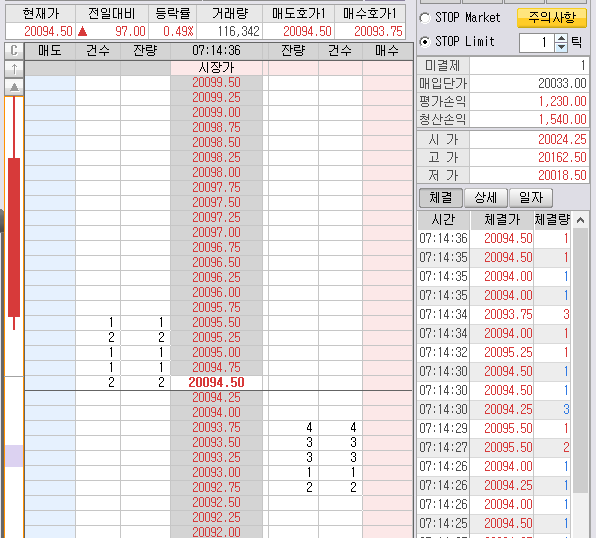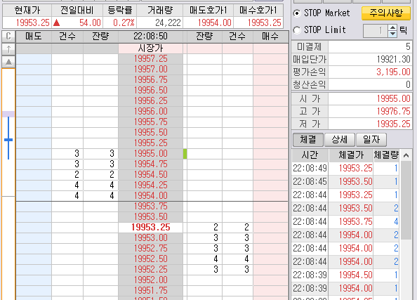 미장 시작하니 밑으로 꼴아 박아면서 미리 대 놓은 매수 3개가 체결되었다.
