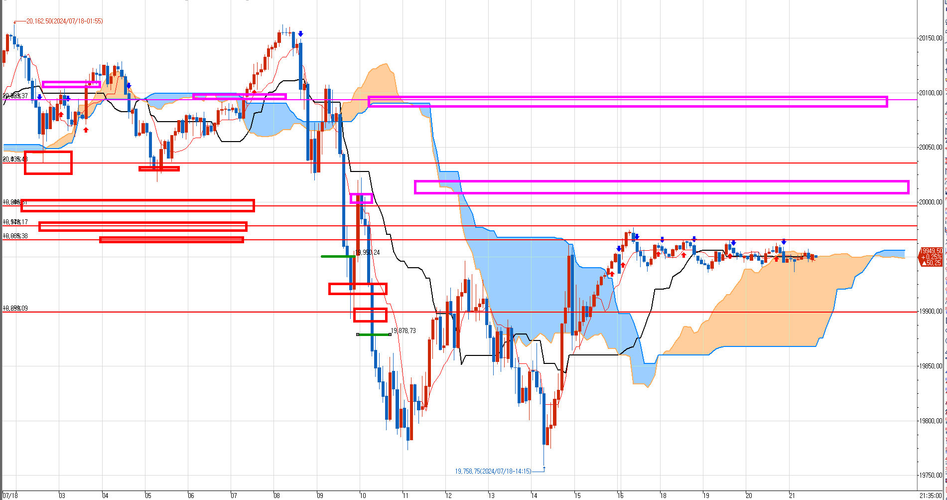 왜냐면.. 내눈에는 아무리 못가도 19970은 다시 반등을 해야 한다. 긴 빨간박스 마지막 구간.