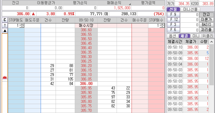 젠장 트레이딩 할 생각이 없어서 전혀 대응을 못 했다가 틱차트 5개에서 동시 매도 목표가 발생한것을 보구..