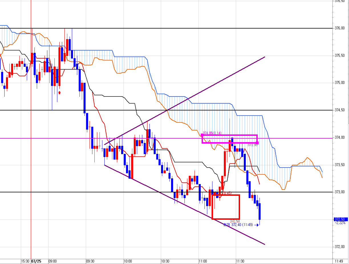 빨간박스 매수 진입! 분홍박스 매수 청산 완료!