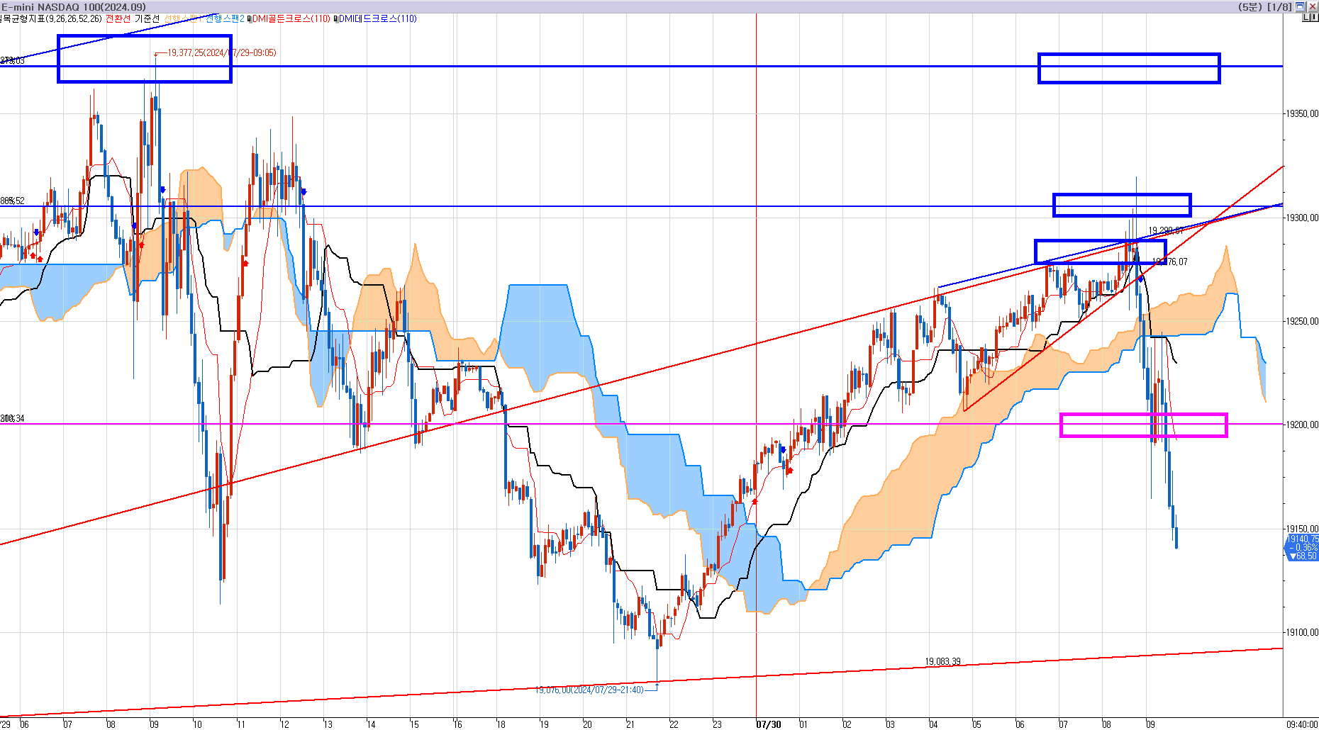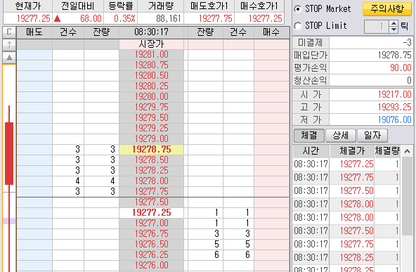 다시 상승하면 위로 800틱 짜리다. 매수 목표가는 19220 이다.