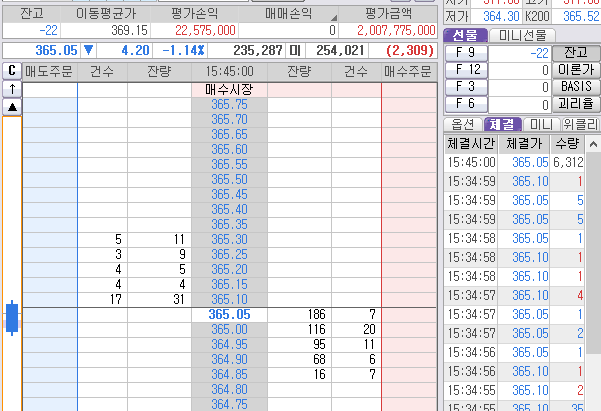 오늘 장 마감 후 캡쳐한 매매창이다.