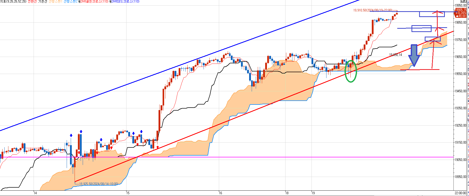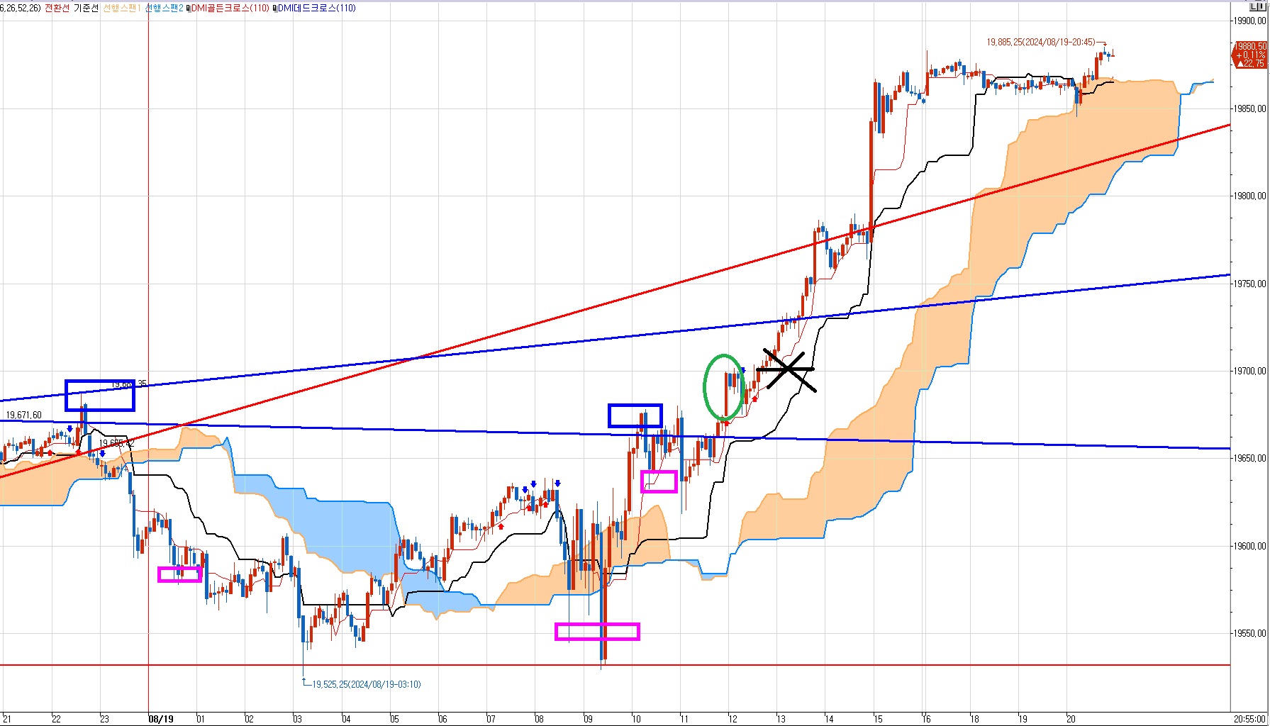 일단 구름대 안에서는 매수건 매도건 당일 도달하는 목표가 들만 노려서 단타 매매하면서 대응할 것이다.