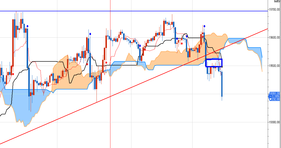 먼저 218번 글 복기한다. 나는 지저분한 과거 매매현황 다 지우고 어제 오전에 나스닥 30분봉이 이리 보인다고 했다. 그리고 위 파란색 저항선 뚫으면 매수 따라가서 19750 먹을 것이고 밑으로 빨간색 지지선 깨지면 매도 따라가서 2주전부터 외쳤던 19069!!! 우라질 69 먹으러 가겠다고 참 친절히도 설명했다.