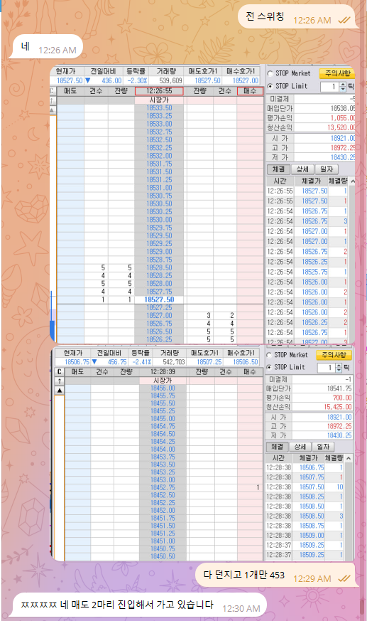 끝까지 매수로 대응했다. 18969! 저위 분홍이 매수목표가 먹을때 까지!