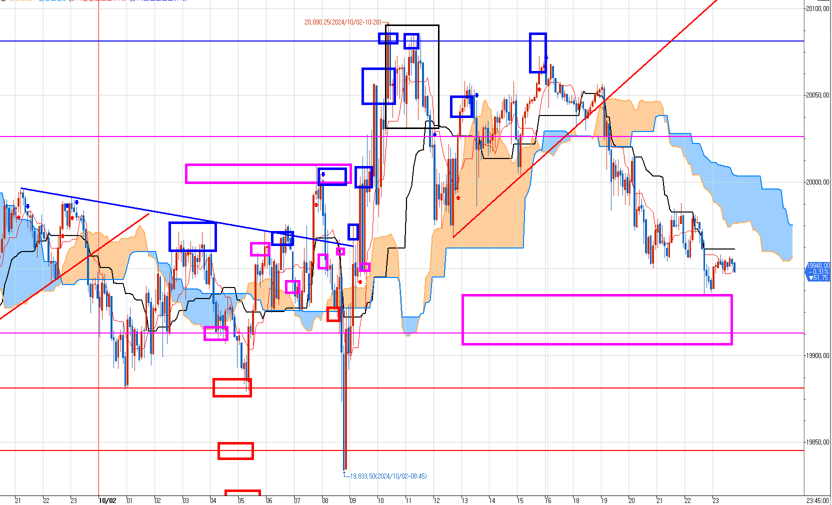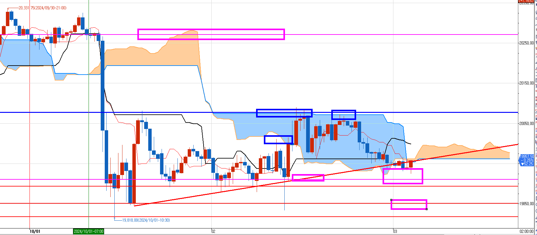 크게 보자면 어젯밤 윗 박스에서 매도치고 홀딩하고 잔 것이고