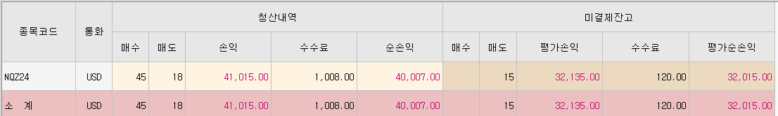 4만불 수익 확정에 아직 15개 매도 홀딩중이다. 어제 매매로 현재 수익 총합이 8만불이 조금 넘는다.