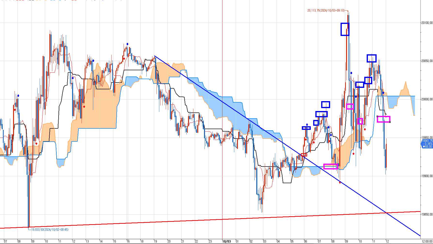 가장 윗쪽의 비스듬한 대각 파란 저항선은 나중에 내려오고 다시 그은 것이다.