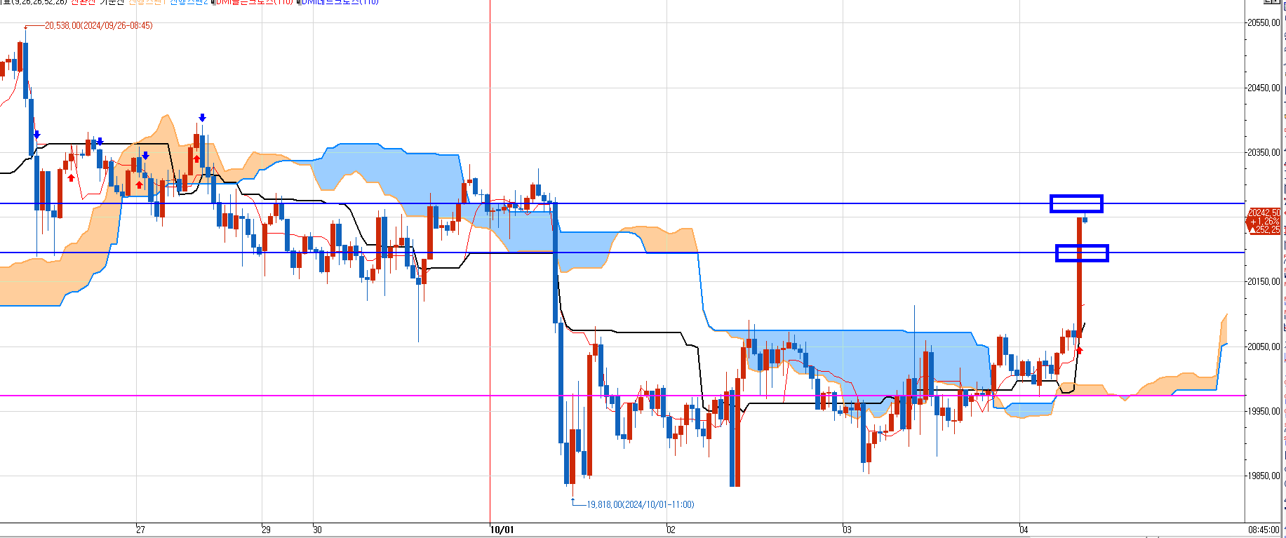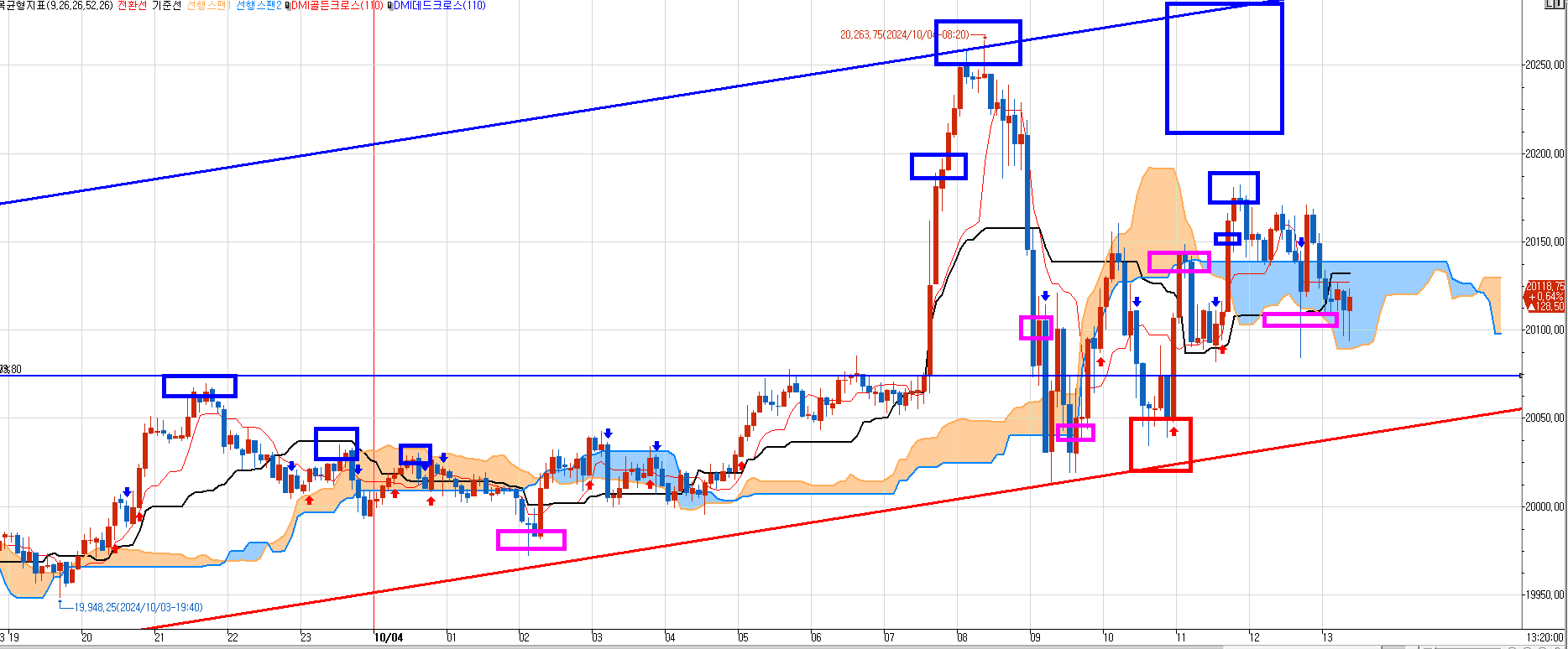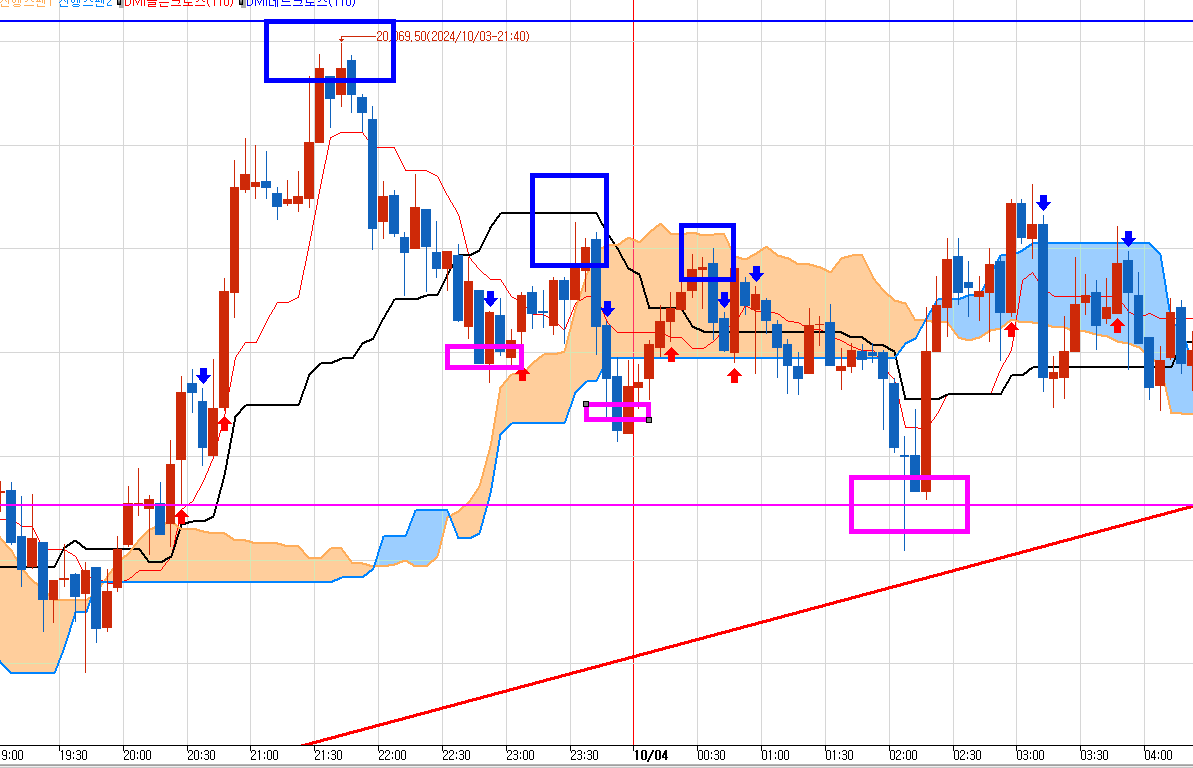 그래서 나는 일단 조금은 첫번째 박스부터 매도 들어간다. 그러나 만약 일목중생들도 따라 매도 친다면 이건 손절 있다. 저항선 진입구간(첫번째 박스) 양봉세우면 즉시 손절하고 위에서만 매도 쳐야한다.