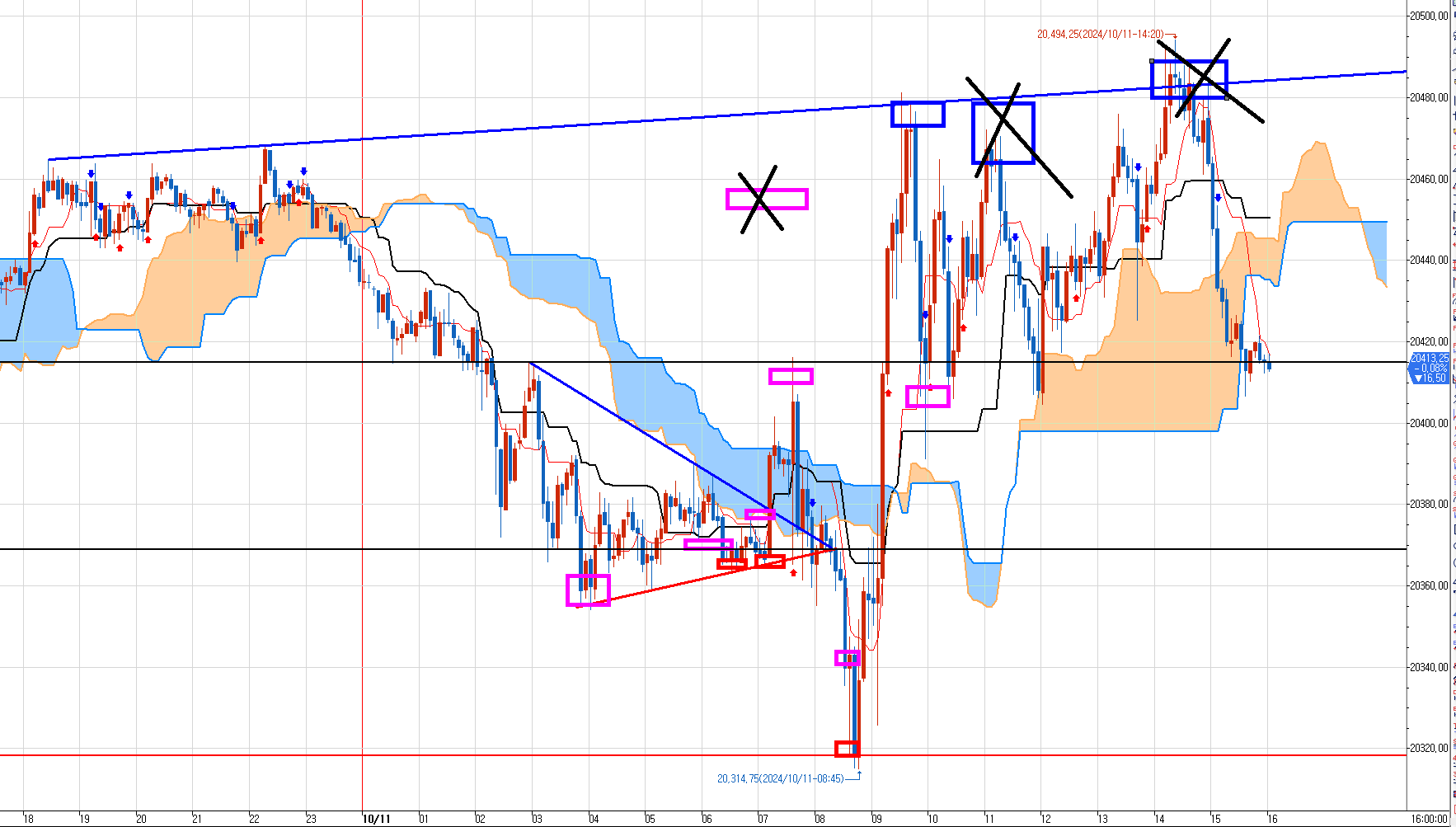 그러면.. 일목도사 없을때.. 저 위에 X표시한 파란박스는 다 매도 들이대야 하는거 아님감?