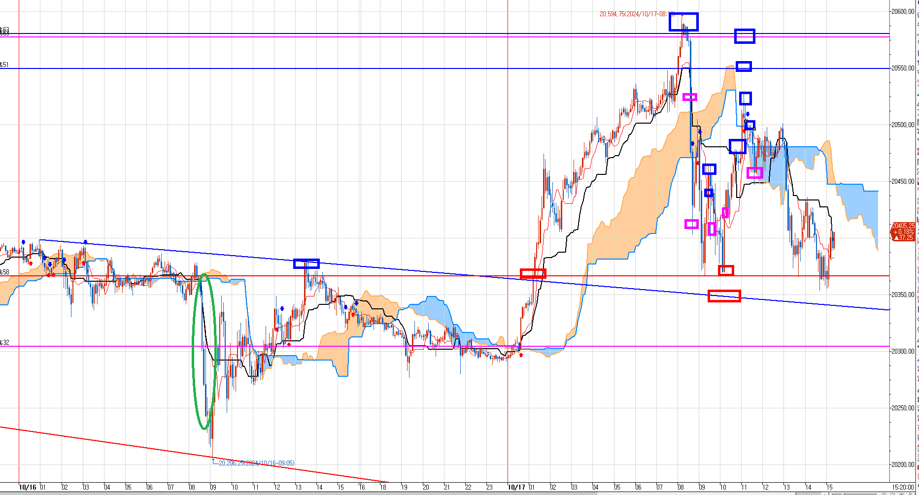 16일에 매매를 했었다면 왼쪽 파란박스 당연히 매도 들이댔을 것이라서 표시만 한 것이다.
