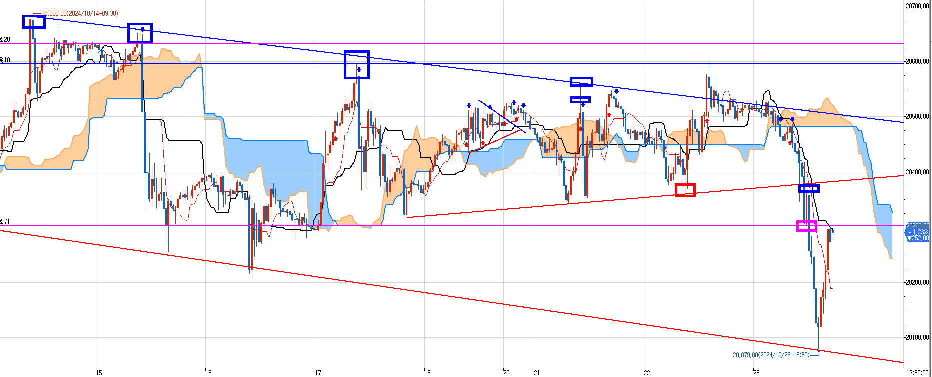 파란박스구간 매도 쳐서 1주일전부터 일목중생들에게 이야기한 최종 매도목표가 20300에 청산하였다.