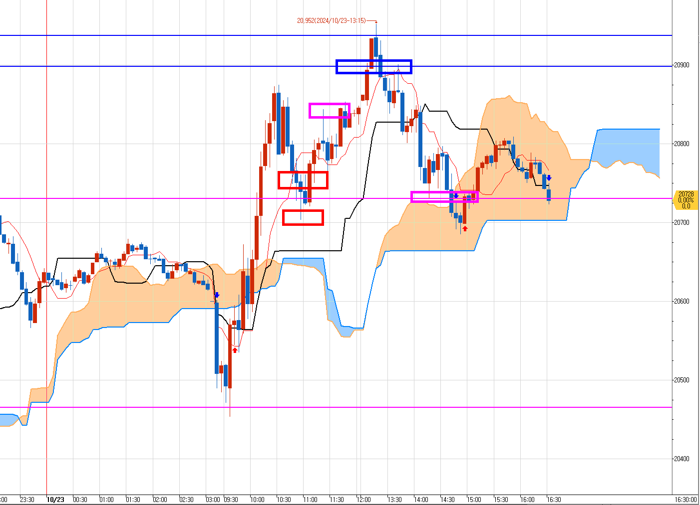 2. 10월23일 항셍 5분봉 차트