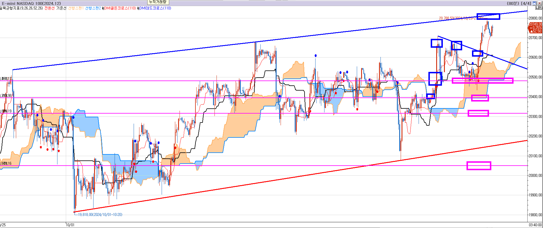 오늘밤에 가장 윗 파란박스 매도구간을 줄지?