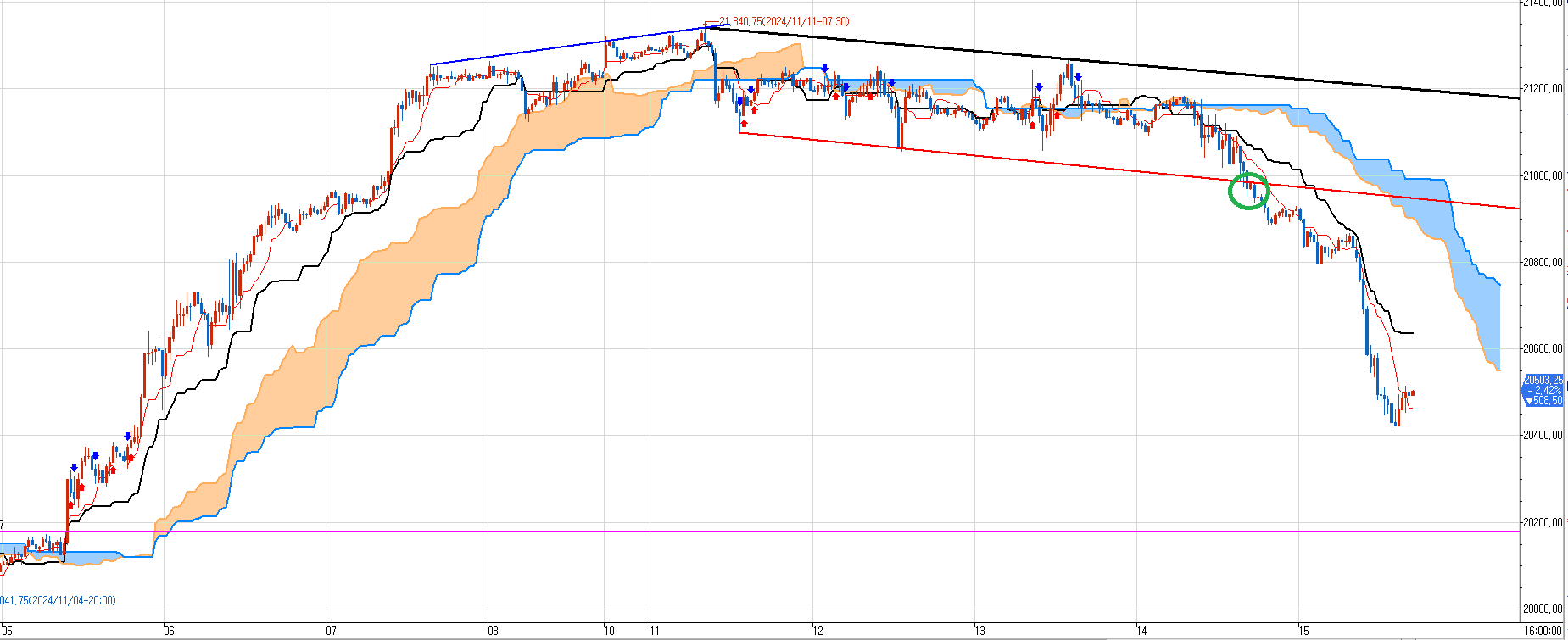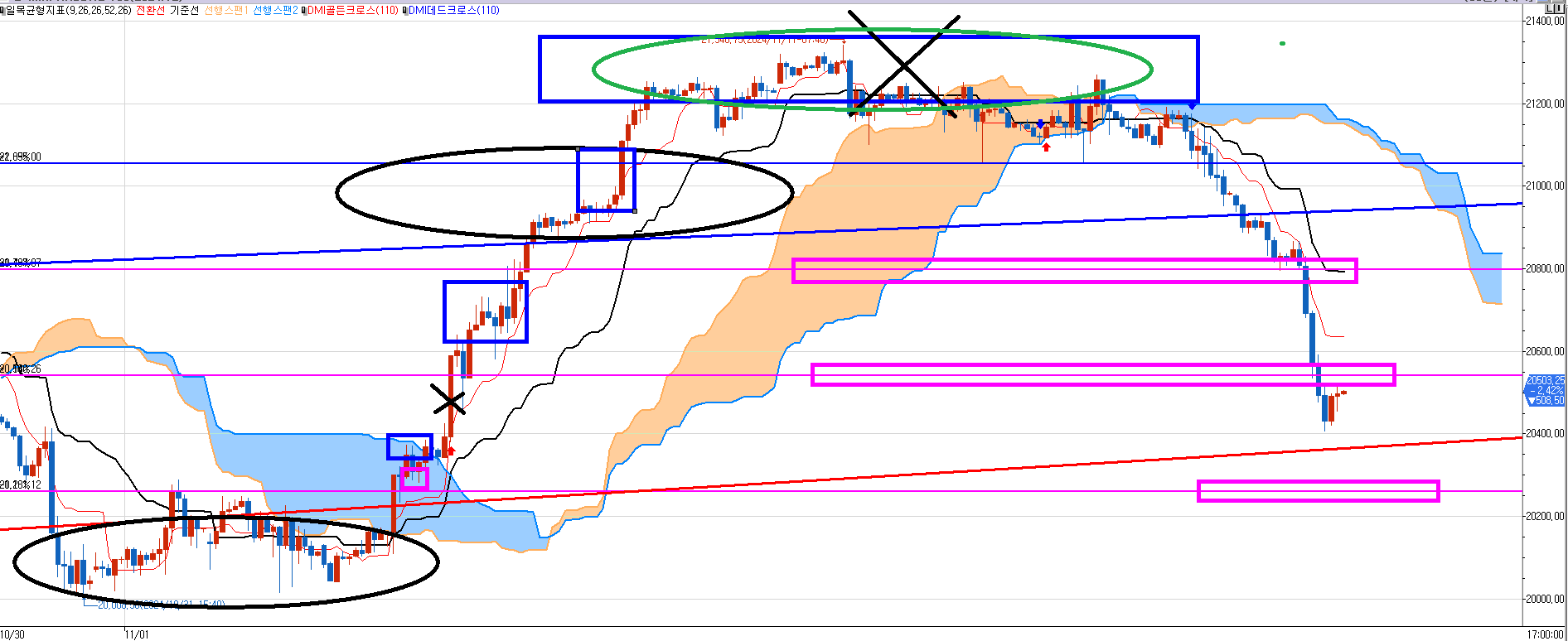 밑으로도 2천틱이 있었기에.... 저 구간에서 잡은 매수를 4일 버팅기다가 크게 못 먹고 고작 400틱 정도 먹고 던져 버린것이다. 미 대선 직전과 대선날 변동성이 커지면서 아래로 2000틱을 꼴아박을 수도 있겠다는 뇌피셜에 에라.. 일단 400틱 먹고 튀자 하고 잘 잡은 매수를 올청산 한 것이다.