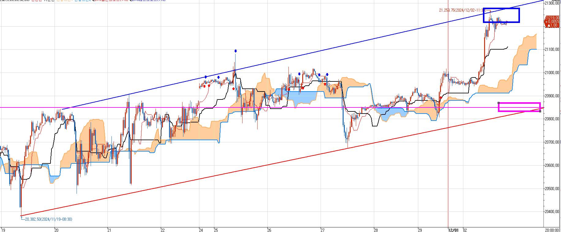 분홍박스에서 정확히 21004를 찍고 상승이 시작되었다.
