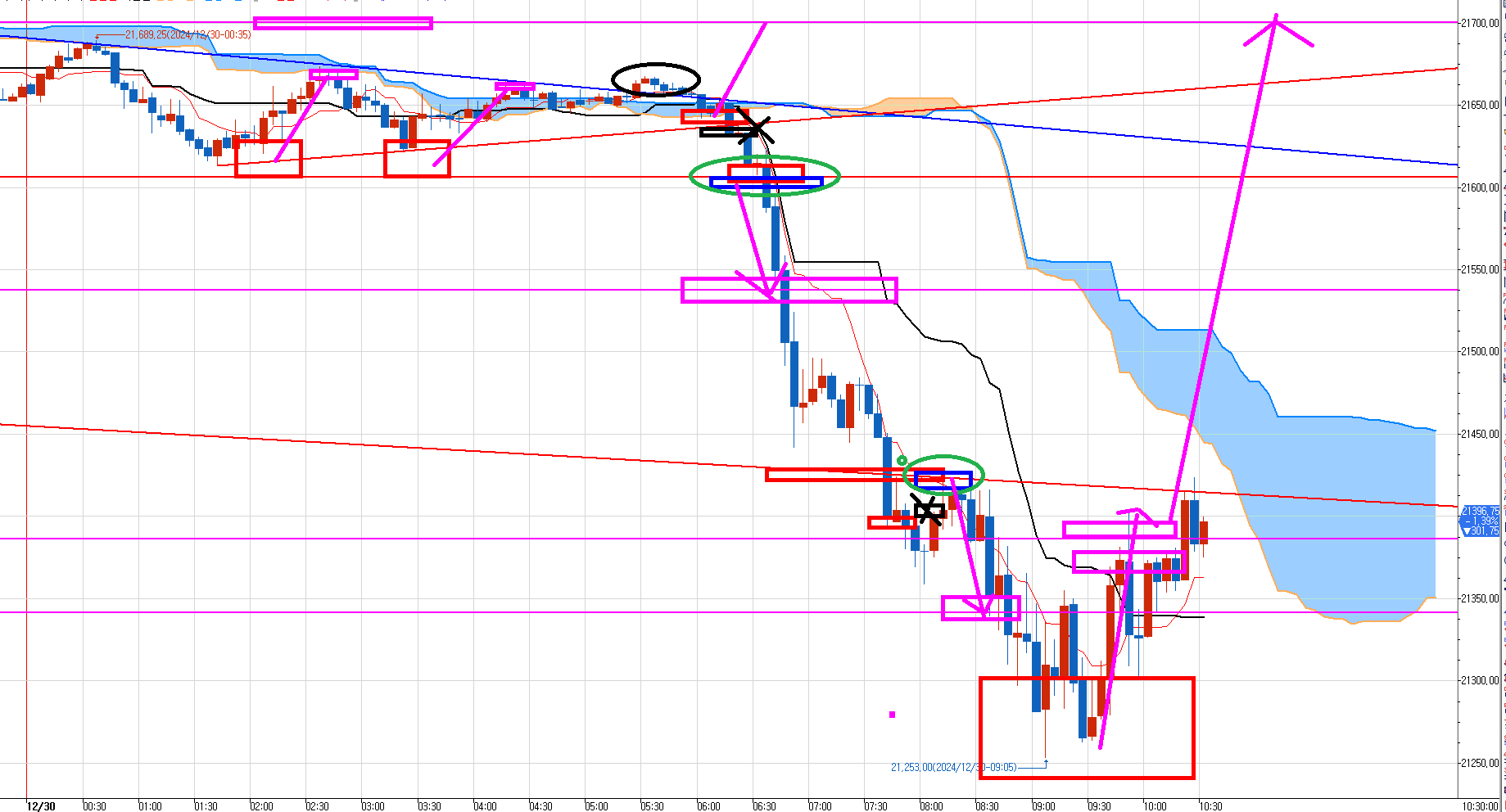 가장 윗 분홍선이 21700 수 목표가다.