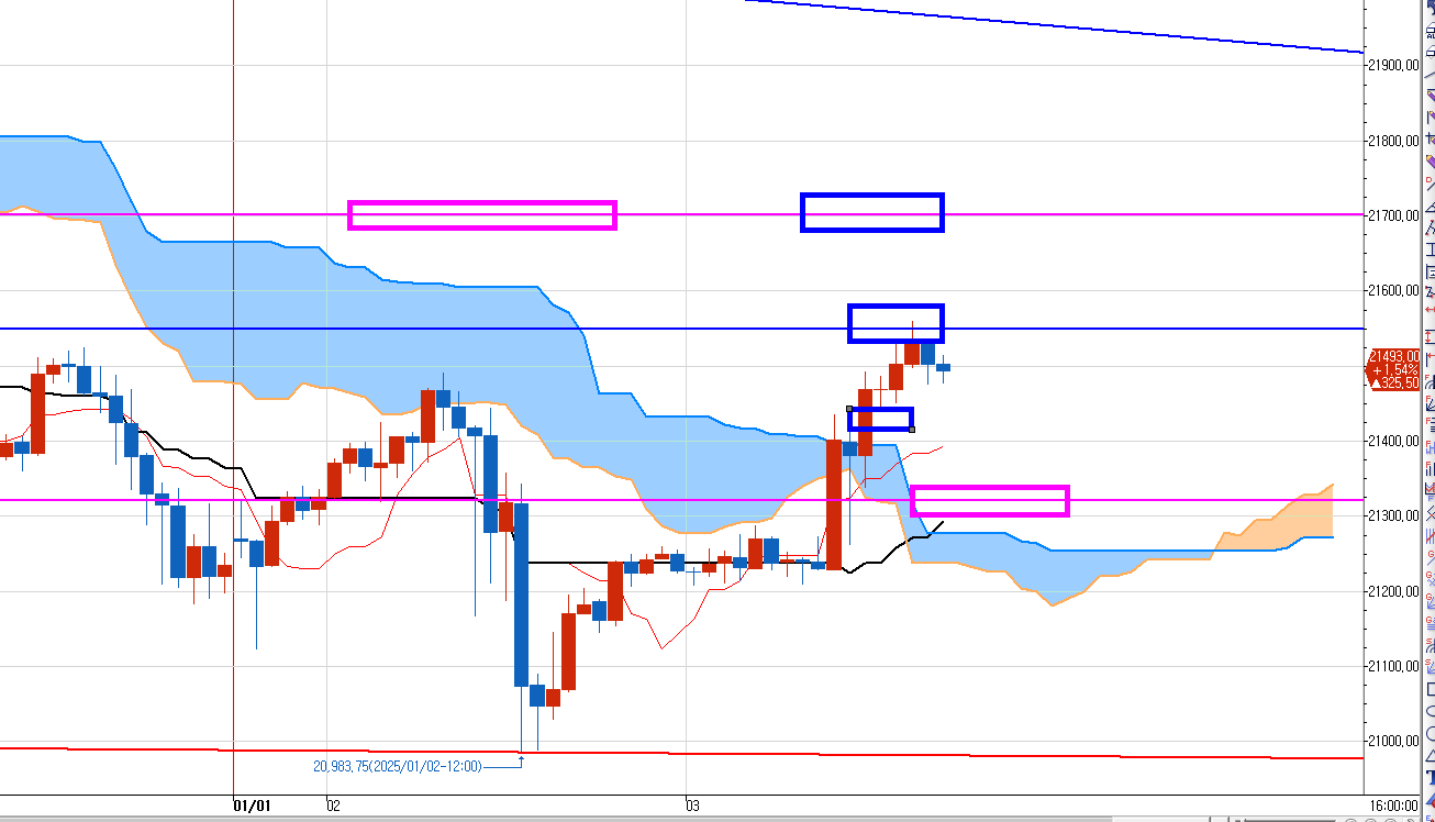 만약 두번째 저항선이 돌파 되었다면.. 그다음은 21700 윗 분홍박스 구간이다.