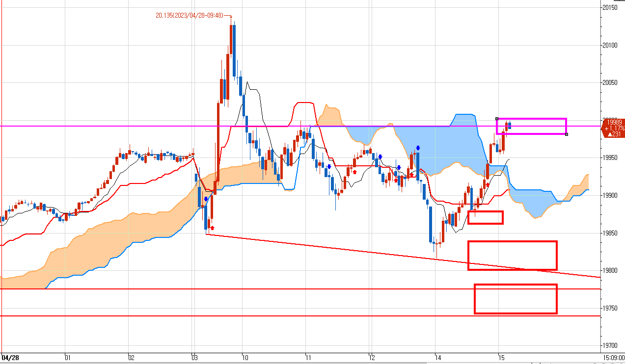 일목균형표 3분봉에 항셍선물 매수 목표가 발생했다.