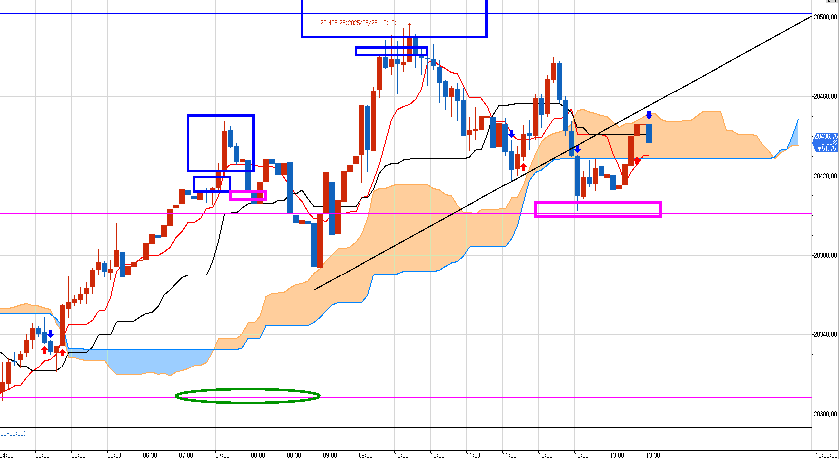 크게 보자면 어젯밤 왼쪽 2개 파란박스 매도 진입해서 20402 아래 분홍박스에 청산하고