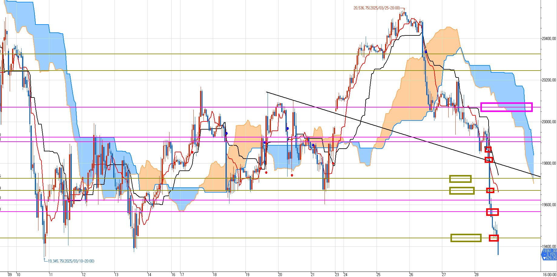 아님, 2주전 저점 19345.75를 지지받고 꿈틀 꿈틀 반등을 시도할 수도 있고.