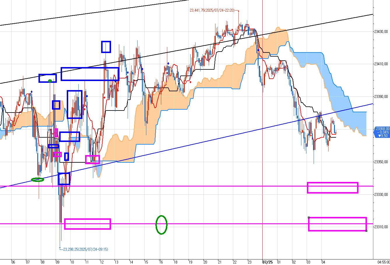 1. 7월24일~25일 초저녁 나스닥 5분봉