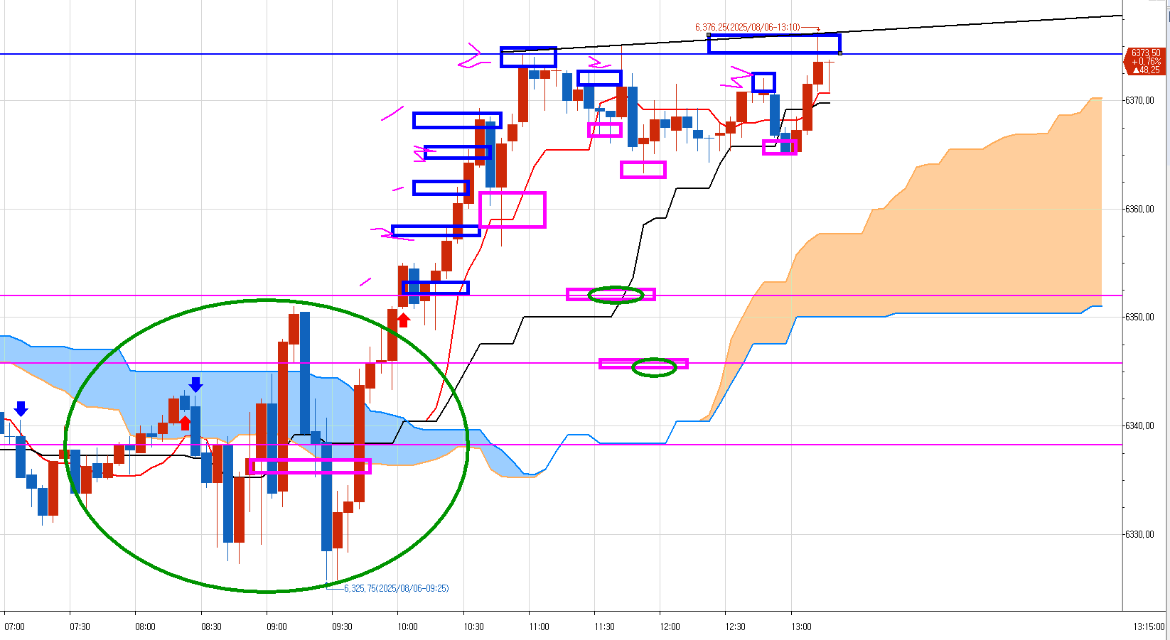 마지막 분홍박스에 나머지 잔여분 올 수익청산 하고 매매 끝냈다.